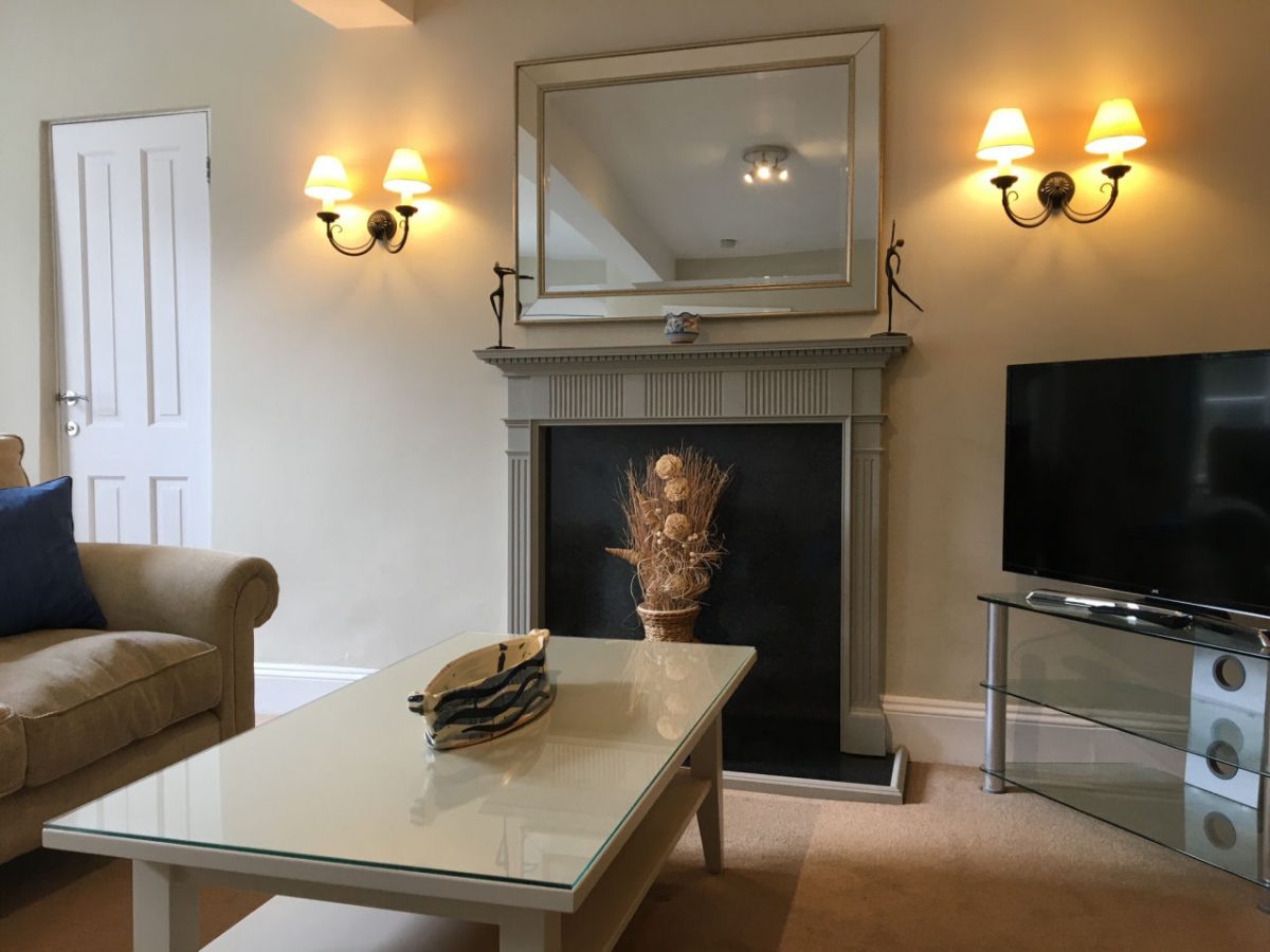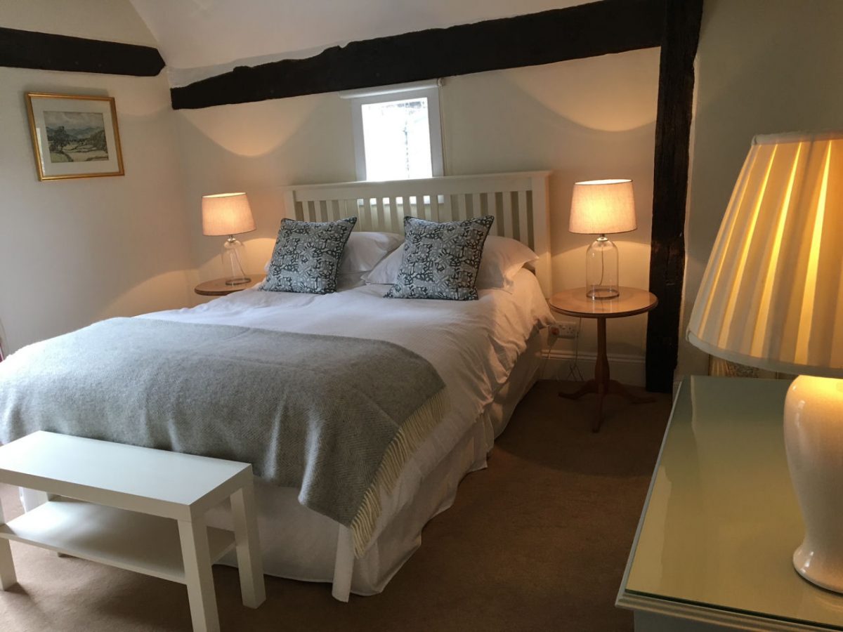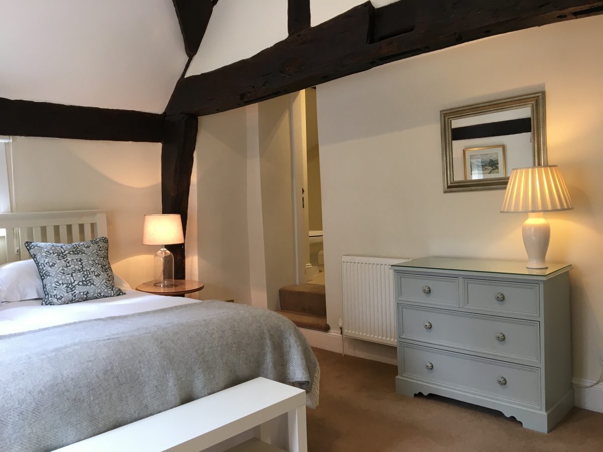 Upstairs there are two comfortable en-suite bedrooms with original beams. One bedroom has a king size bed with en-suite shower and views to the church tower and Abbey ruins.